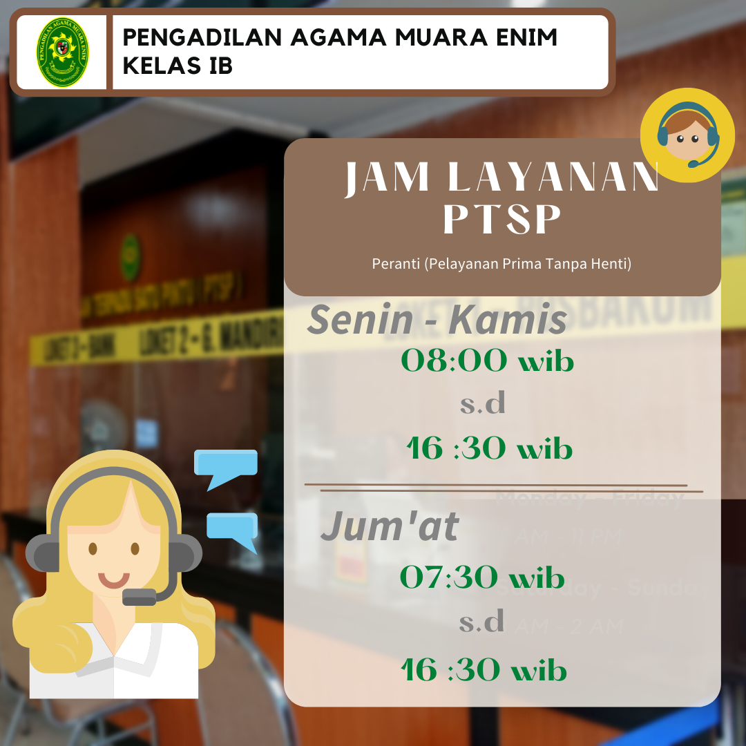 Silahkan hubungi Pengadilan Agama Muaraenim, Kami siap melayani para pencari keadilan.